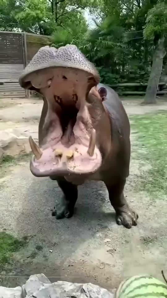 2. 河马吃瓜翻车现场:这个视频里,一只河马吃瓜时,不小心把瓜皮扔到了地上,结果自己却摔了个四脚朝天。旁边的河马们看到这一幕,忍不住笑出声来。